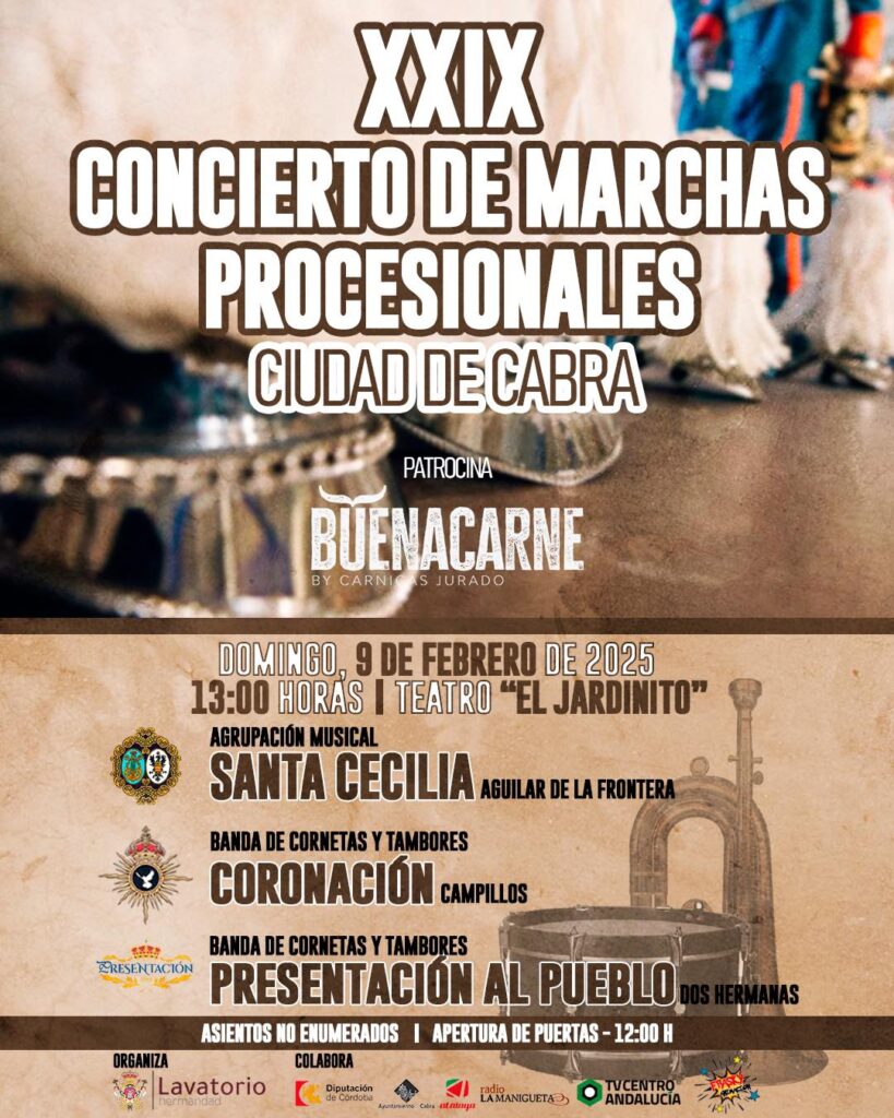 CABRA SE PREPARA PARA LA XXIX EDICIÓN DEL CONCIERTO DE MARCHAS PROCESIONALES ‘CIUDAD DE CABRA’ QUE SE CELEBRARÁ EL PRÓXIMO 9 DE FEBRERO