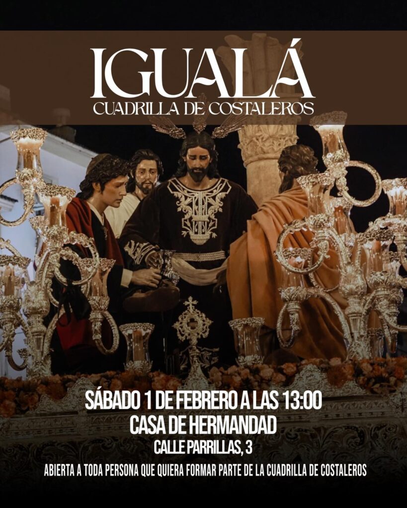 La Hermandad del Lavatorio, a través de su equipo de capataces, convoca a todos los costaleros del paso de misterio y a aquellas personas interesadas